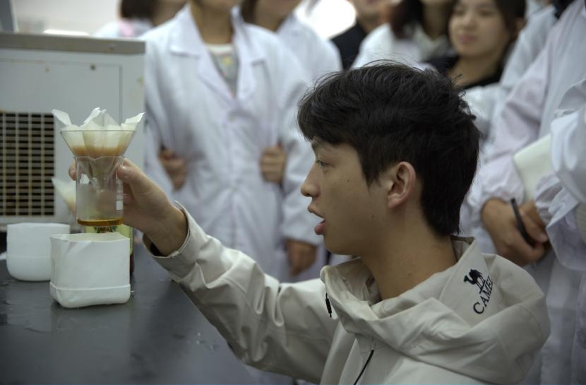 酿造过程中,师生协同作战,有序推进各项工序:精心煮制醪液麦汁,通过专业过滤技术分离麦皮与麦汁,高温煮沸麦汁时精准投放酒花,待麦汁冷却后接种酵母,完成回旋沉淀、冷热转换等操作,最终将麦汁注入发酵罐封装,并详细记录各环节数据。整个过程中,同学们认真学习操作技巧,积极请教疑问,老师耐心指导、倾囊相授,现场氛围热烈而融洽。