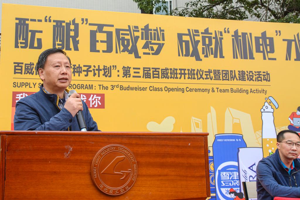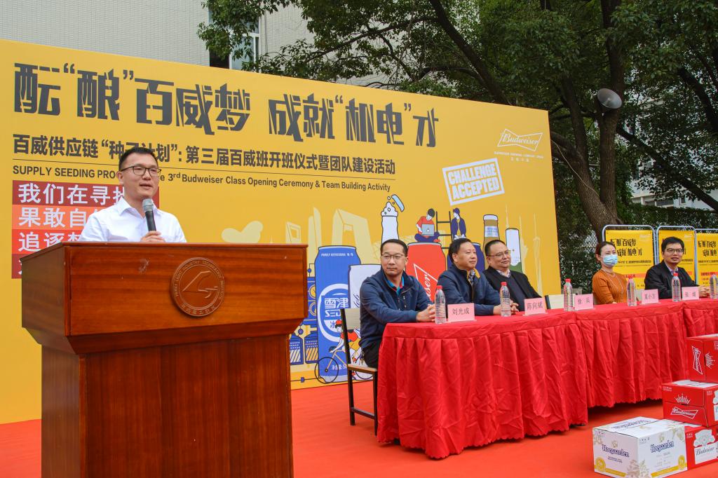 开班仪式上,百威及校方代表均表达了对新生成长的殷切寄语和期望。据悉双方开展订单班,共同推动人才培养计划的校企合作模式是从2019年开始的,今年已是第三届,此次我校共有140余名学生入选百威供应链“种子计划”订单班,涵盖酿酒技术和机电一体化技术两个专业。