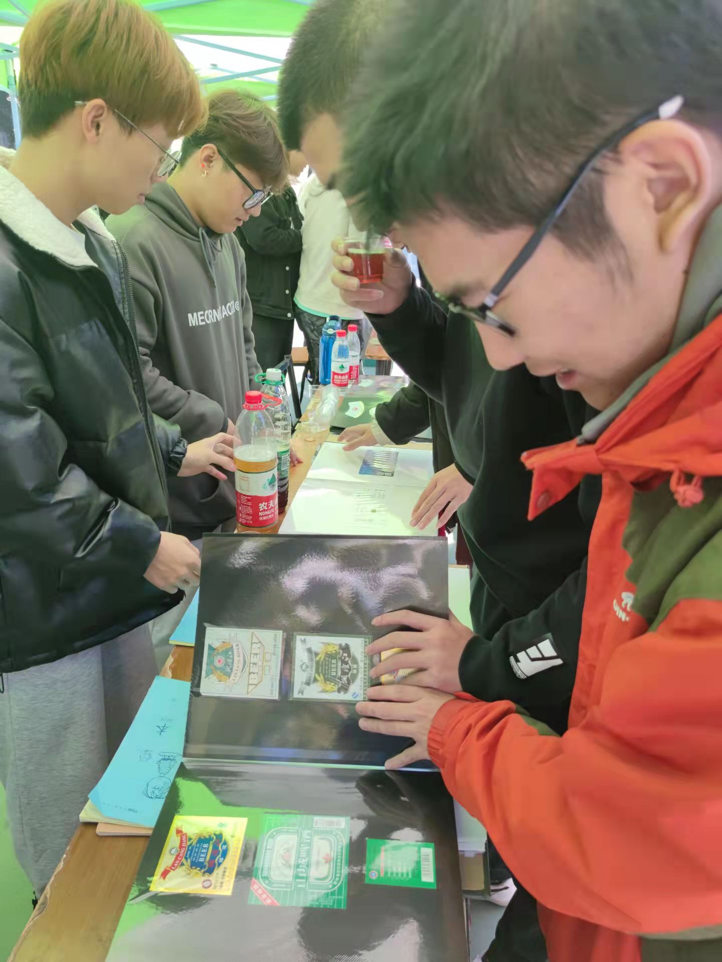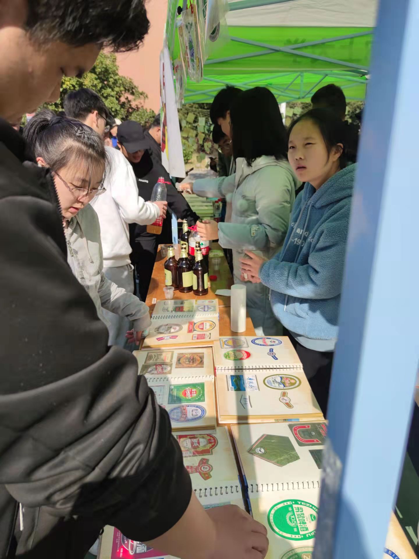 “赏啤标,品啤酒,知酒史”,此次啤标展,我们不仅展出了近年来大家耳熟能详的风花雪月、鹅岛等啤标,同时,以往的北京啤酒、五星啤酒等啤标也为同学们展现了出来。活动期间,学院精心为同学们准备了学校自酿的中心啤酒(精酿小麦酒),供大家品尝。我们准备了专门的小问题、小游戏,邀请大家积极参与,并细心为同学们讲解。
