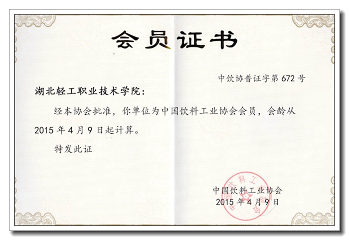 热烈祝贺湖北轻工职业技术学院成为中国饮料工业协会会员单位