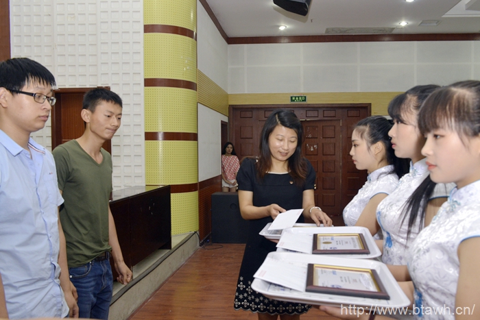 中德啤酒学院院长刘少清为获奖学生颁奖