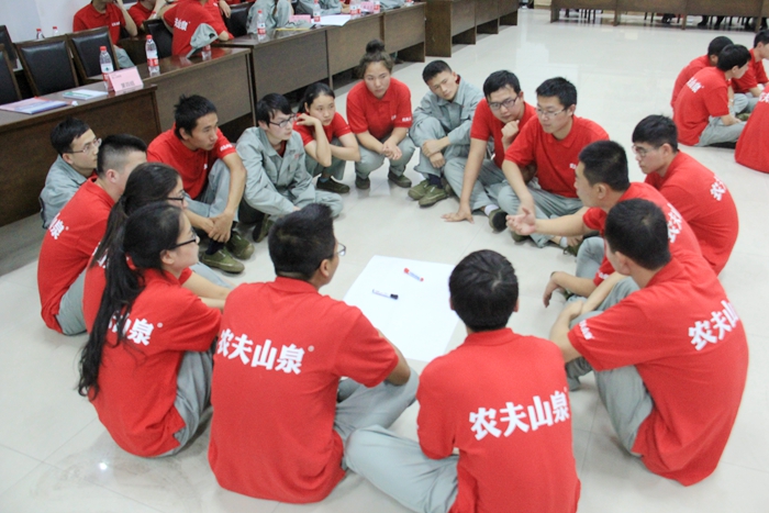 此次活动分为8个小组进行,农夫山泉班的翁斌、黄超敏、饶胜男及罗凯夫做起了小组组长,活动围绕“课程培训”、“团队熔炼”及“军训”三大主题展开,旨在锻炼员工的坚强意志,增强员工团队凝聚力和整体向心力。课程培训主要涉及“企业文化与产品知识”、“绩效管理”及“职业发展规划”等理论知识;团队熔炼则通过“孤岛求生”、“一瓶天下”及“我们是最棒的团队”等游戏项目锻炼大家的团队协作能力;军训主要就是训练站军姿、走方步,还有其他的一些体能训练。无论哪项主题活动,大家都全心投入,虽然累,但大家依旧坚持着!